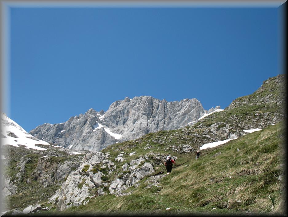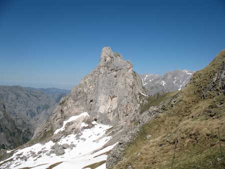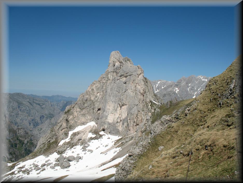 con la Peña Santa a la vista, girando totalmente a la derecha en