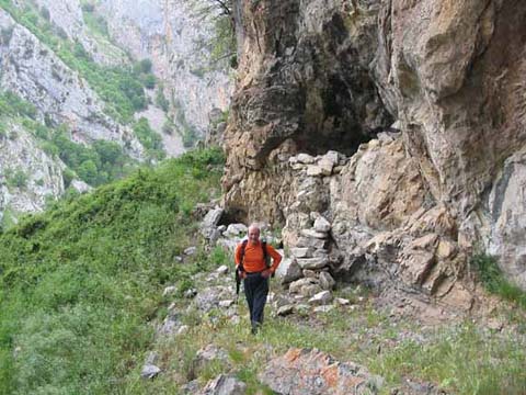 Continuamos el tránsito para dar la vuelta al "cantu" y pasar por la riega de la vega "Casielles" ( la cabaña que hay al lado del Cares después de los túneles)