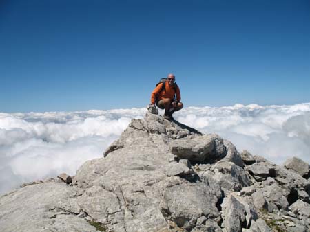 En la cumbre con un mar de niebla al fondo