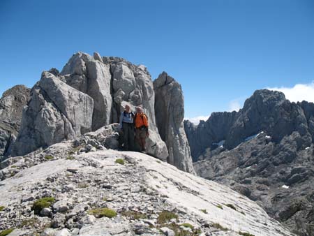 La foto con el compañero y la tercera Cebolleda detrás de nosotros, con la Peña Santa más al fondo. Es una actividad muy agradable, con grandes vistas y un recorrido no exento de emoción.
