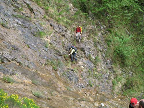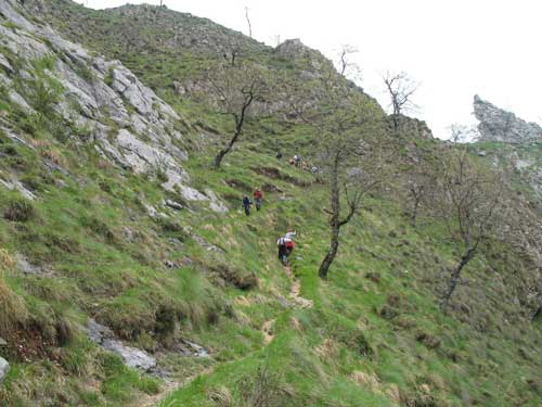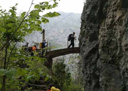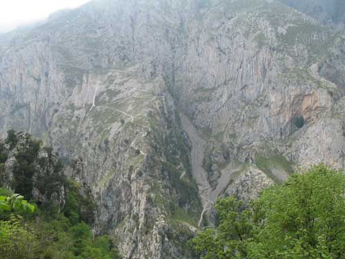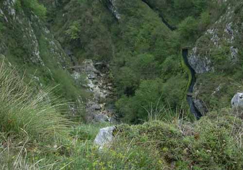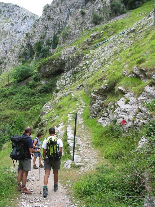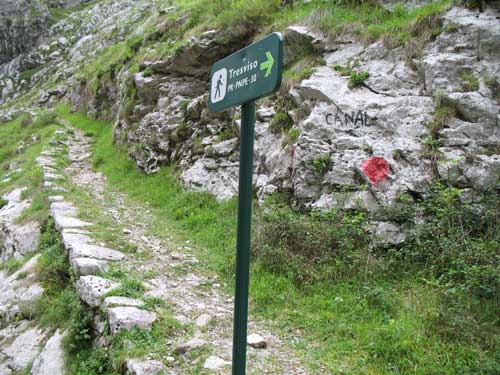 Entroncamos con el camino que viene de Tresviso y descendemos por el tallado camino hacia el fondo del río.