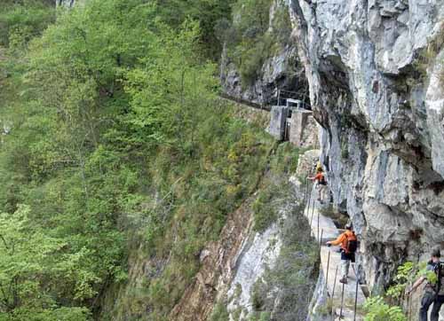 Desde este lugar unas escaleras nos conducen en vertical descenso hacia la canal de Aileras y senda inferior.