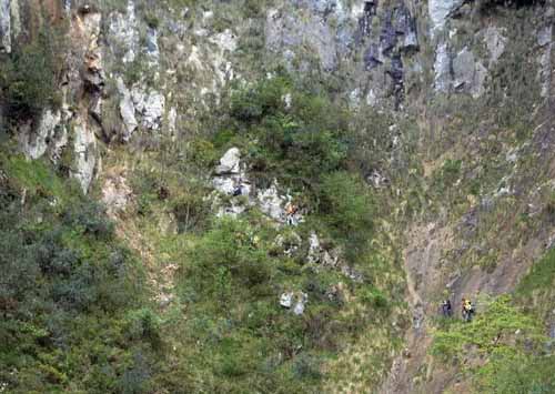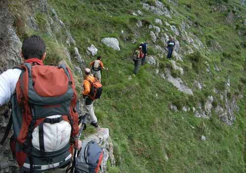 Caminamos y entonces ! la pasarela ! .Un corredor ( muy simple) , el de Matallana, colgado sobre el derrumbe que pasamos con distancia de precaución