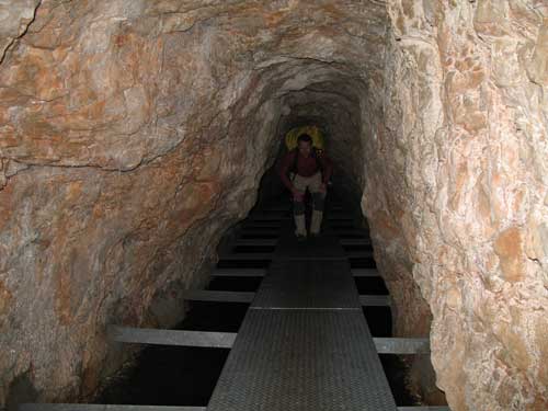 Ahora nos encontramos con un túnel que debemos pasar con una cierta oscuridad, con el agua bajo nuestros pies, y circulando sobre unas planchas metálicas perfectamente asentadas sobre la pasarela.