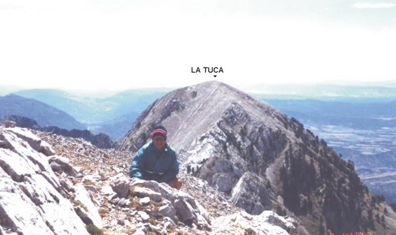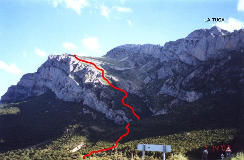 | Desde la misma carretera vemos el hombro saliente del bloque de la Tuca. Por esa gran rampa vamos a subir. | |||