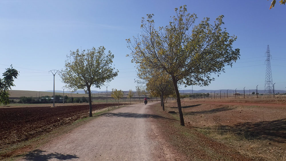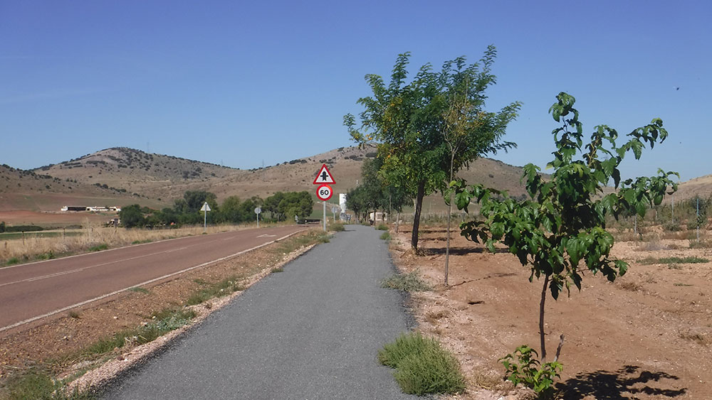 Pasado bajo un pequeño puente, comienza la señalizacion de la Vía Verde. Son unos 6km que nos llevan hasta Poblete. Está concurrida por viandantes y mascotas.