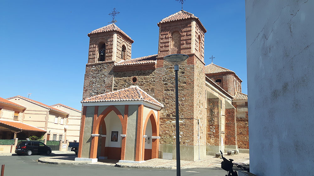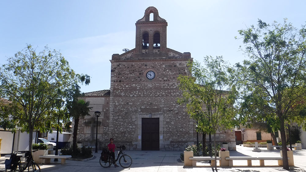 Ante la iglesia de Sta. Maria Magdalena, de Poblete.