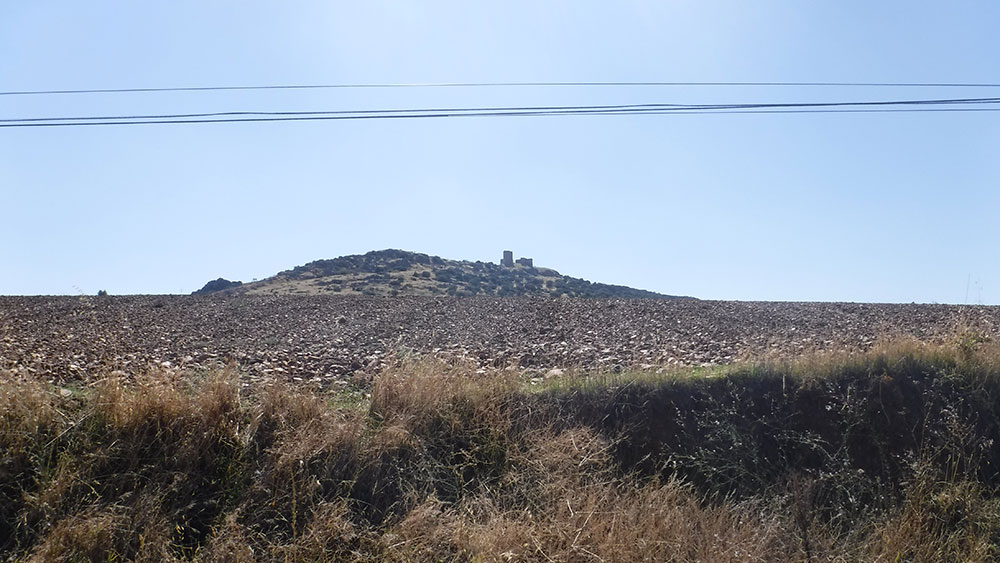 Poco después de salir de Corral de Calatrava, vemos a la derecha las ruinas del castillo de Caracuel, de propiedad privada. No es visitable. La carretera se pone ascendente.