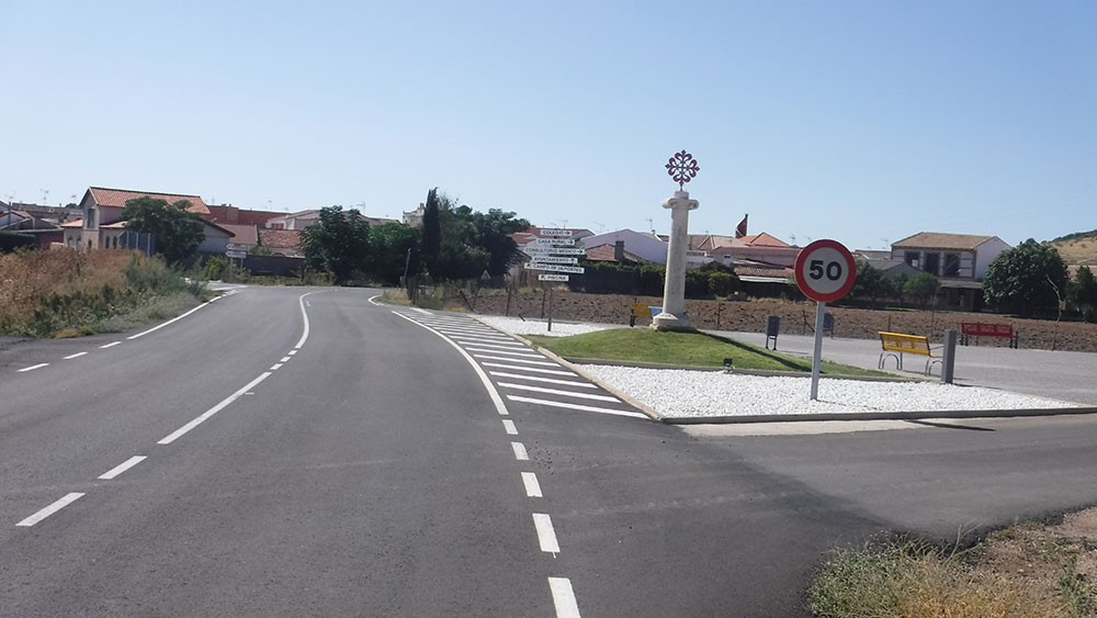 Andamos unos 3km por la nacional y la abandonamos por la dcha. a Villamayor de Calatrava, por la CM-4115. Esta imagen es la entrada al pueblo, lugar de reciente remodelación.