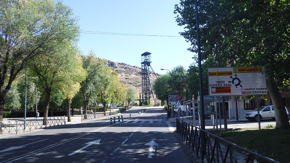 Seguimos pedaleando. Desde Corral de Calatrava la carretera es ascendente con mas o menos inclinación, bien con un falso llano o con una verdadera cuesta; pero seguimos adelante hacia nuestro objetivo Puertollano, que hace honor al dicho de que ni es puerto ni es llano. Con ésta imagen de arqueología industrial, el castillete del pozo Santa Maria, nos da la bienvenida Puertollano.