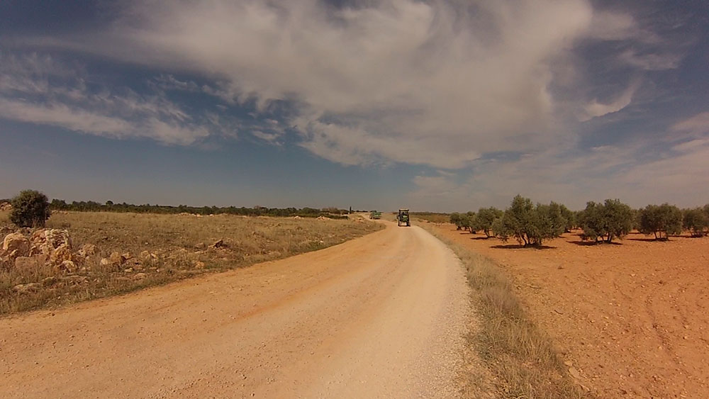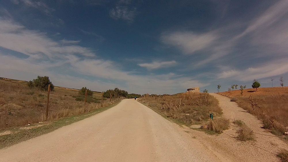 Una vez salimos del casco urbano de Campo de Criptana, tomamos una pista camino de Socuéllanos, luego cambiamos al camino del Chaparrall, siempre entre viñedos y olivos. Pronto nos meteremos en zona pedregosa, sobretodo en la parte del camino de la Casa de los Frailes.