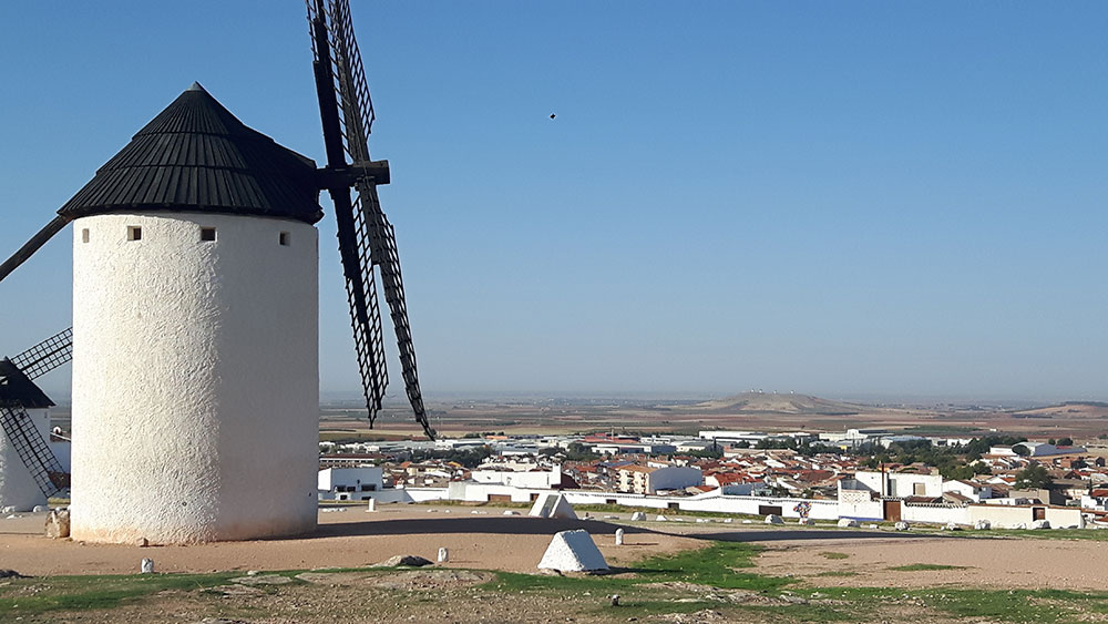 Pronto se ven los 7 molinos de Mota del Cuervo.