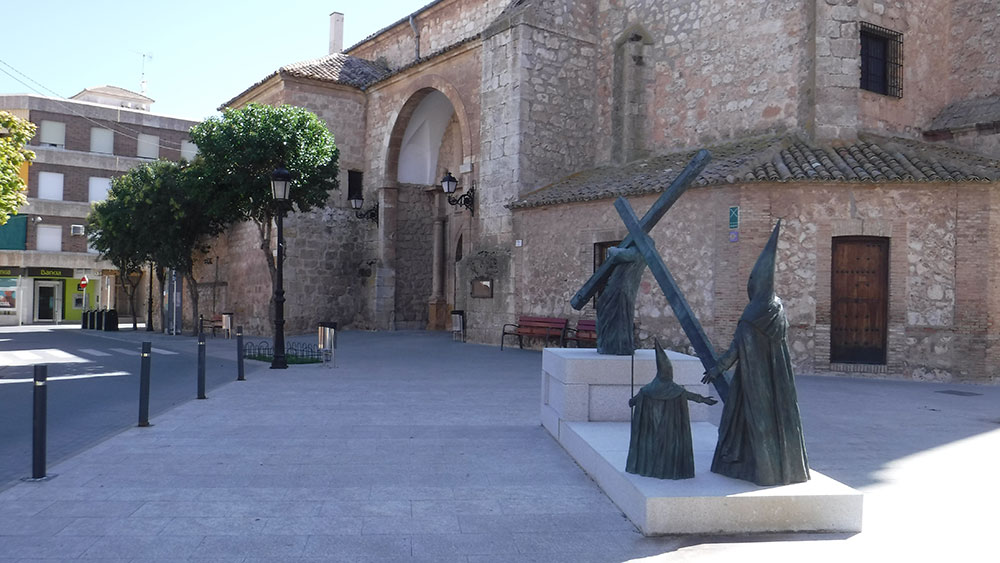 En la plaza del grano de Quintanar hay este conjunto escultórico que representa la importancia de la Semana Santa en la localidad. Alli se levanta la iglesia de Santiago, S. XVI, de estilo gótico tardío con torre de caracter defensivo. Muy cerca tambien se localida la llamativa Casa de los Rada del siglo XVII .