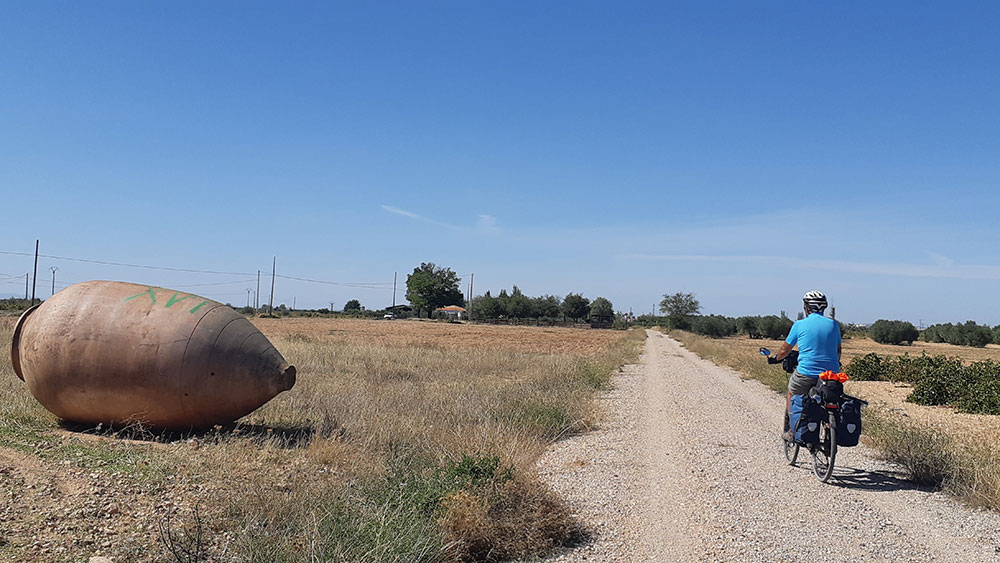 Saliendo del Toboso. Tipica tinaja de barro, manchega.