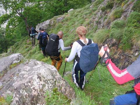 Continuamos el tránsito para dar la vuelta al "cantu" y pasar por la riega de la vega "Casielles" ( la cabaña que hay al lado del Cares después de los túneles)