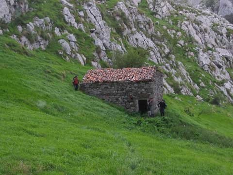 Continuamos descendiendo por zona sombreada de árboles, y la vegetación se espesa hasta el punto de hacerse incómodos sus ortigales. Una de las cabañas con apariencia de uso.