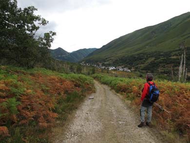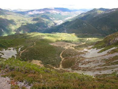 El camino presenta suave inclinación hasta la Veiga, mirando atrás vemos Degaña ⊳