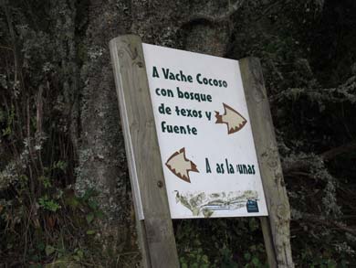 Desde el centro de la Veiga giramos a la izquierda, hacia la arboleda con la intención de hacer una fuerte subida. ⊳