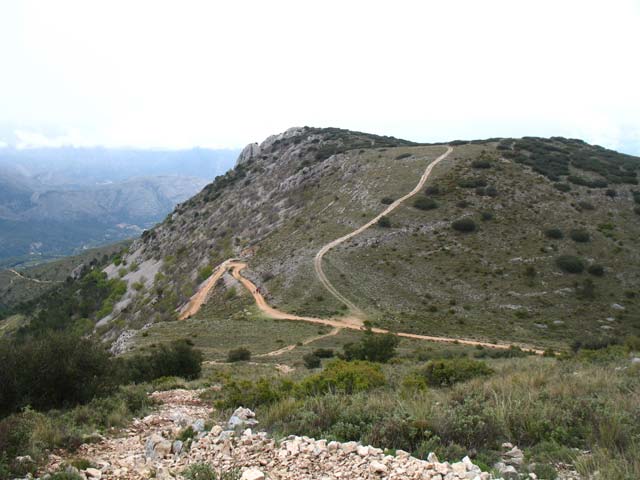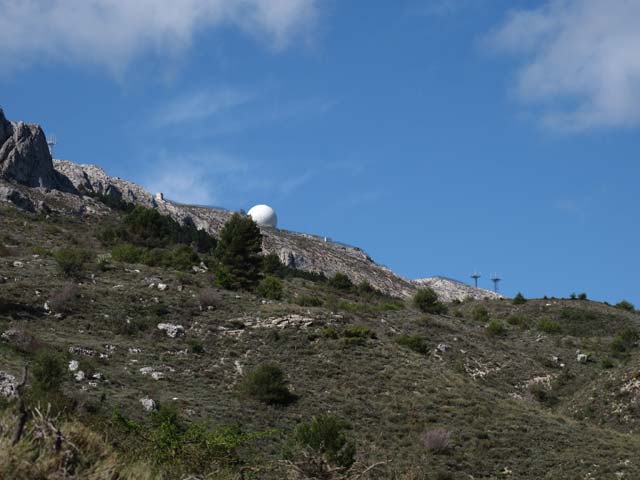 Después de un buen trecho, el camino en suave subida nos lleva hasta un collado superior y ya se aprecian las antenas del Aitana.