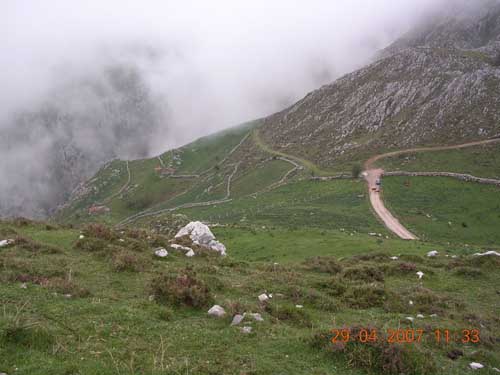 tAmbas laderas del collado Trespandiu se encuentran con edificaciones de cabañas. Desde aquí se sigue sin dificultad del camino de descenso a Oceño, o bien se contoinua para las cumbres cercanas como es el caso del Vigueras