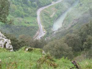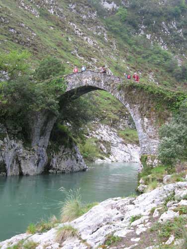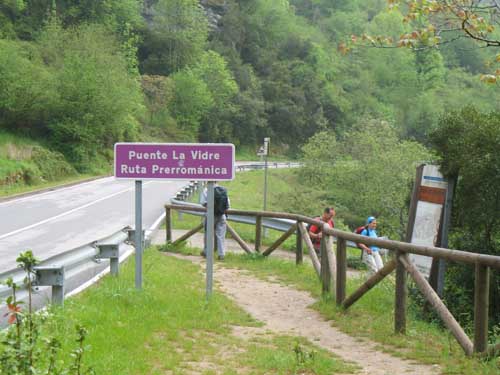En la carretera de Arenas de Cabrales a Trescares, y poco antes de llegar a este lugar, comenzamos a caminar cruzando el río Cares por el puente de la Vidre, sobre un gran pozo salmonero.